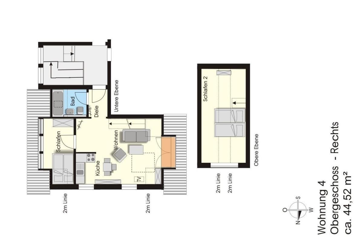 3-Raum-Wohnung über 2 Etagen (1 OG + 2 OG)